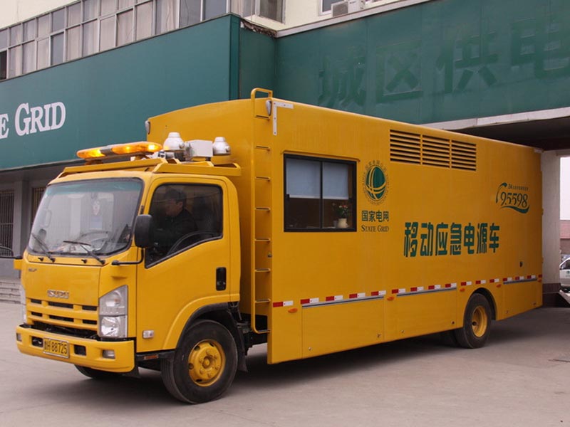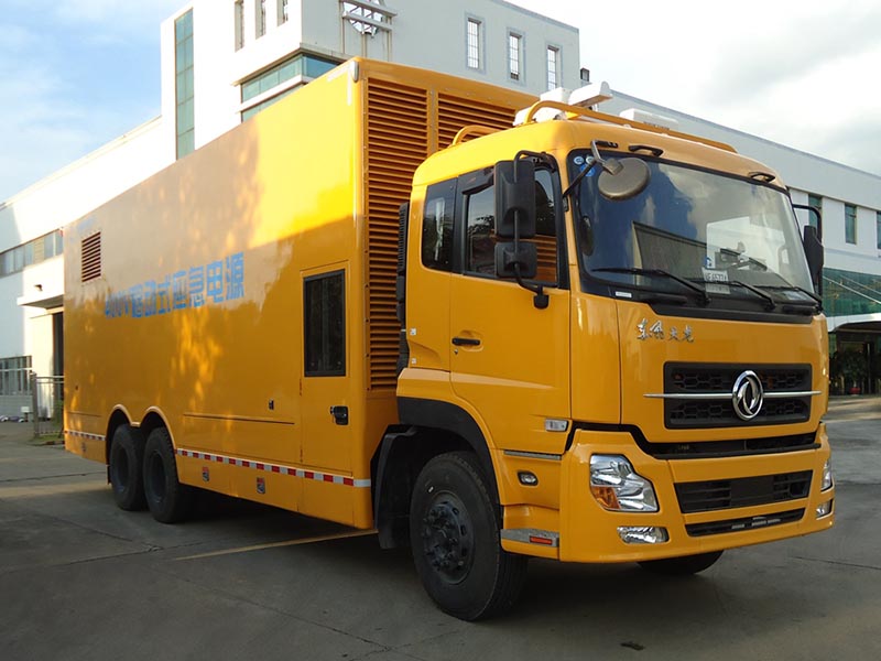 电源车可称为移动电源车、应急电源车、发电车。多功能应急电源车是安装有发电机组和电力管理系统的专用车;移动电源车主要用于电力、通信、会议、工程抢险和军事等场所用作机动应急备用电源,可预防突如其来的停电带来的严重影响。电源车一般具有良好的越野性和对各种路面的适应性,适应于全天候的野外露天作业,而且能在极高、低温和沙尘等恶劣的环境下工作。具有整体性能稳定可靠、操作简便、噪音低、排放性好、维护性好等特点,能很好的满足户外作业和应急供电需要。电源车采用非电启动及空气为冷却介质的发动机,不但免除了蓄电池及风箱水箱的维护以及加注冷却液的烦恼,而且能在极高、低温和沙尘等恶劣的环境下工作。