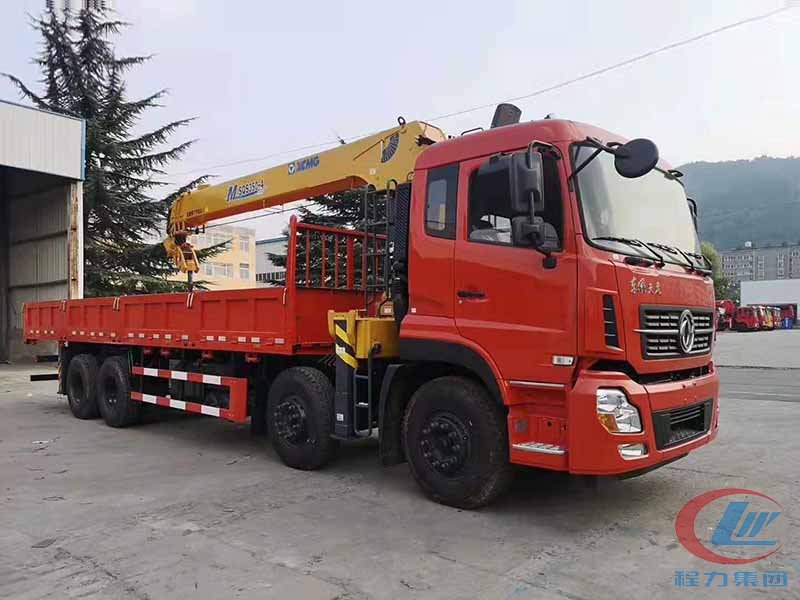 程力东风天龙前四后八随车吊,东风天龙前四后八随车吊,康明斯315马力发动机,法士特12档变速箱,1100钢丝胎,局部三层300的大梁,配置徐工12吨4节臂吊...
