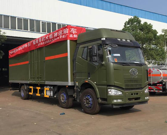 程力油化公司危化品厢式车厂第一单为部队火箭弹专用运输车,此车目前已经军队某部验收合格,正式投入使用。以下为产品展示图: