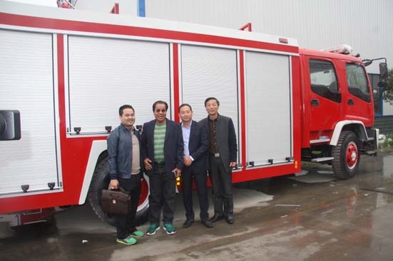 柬埔寨国家安全部部长一行的领导们,对我们程力公司的生产的115台庆铃五十铃泡沫消防车产品感到非常的满意