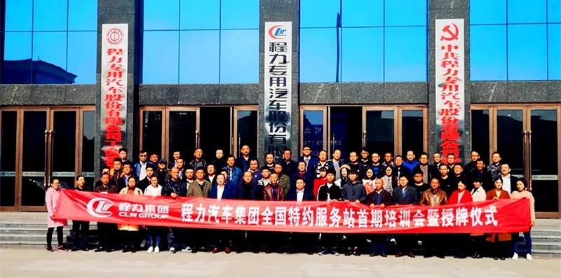 程力汽车集团公司董事长程道国、总经理程阿罗、常务副总经理程国强、程力公司全国区域管理中心主任李龙参加主持了培训会暨授牌仪式。