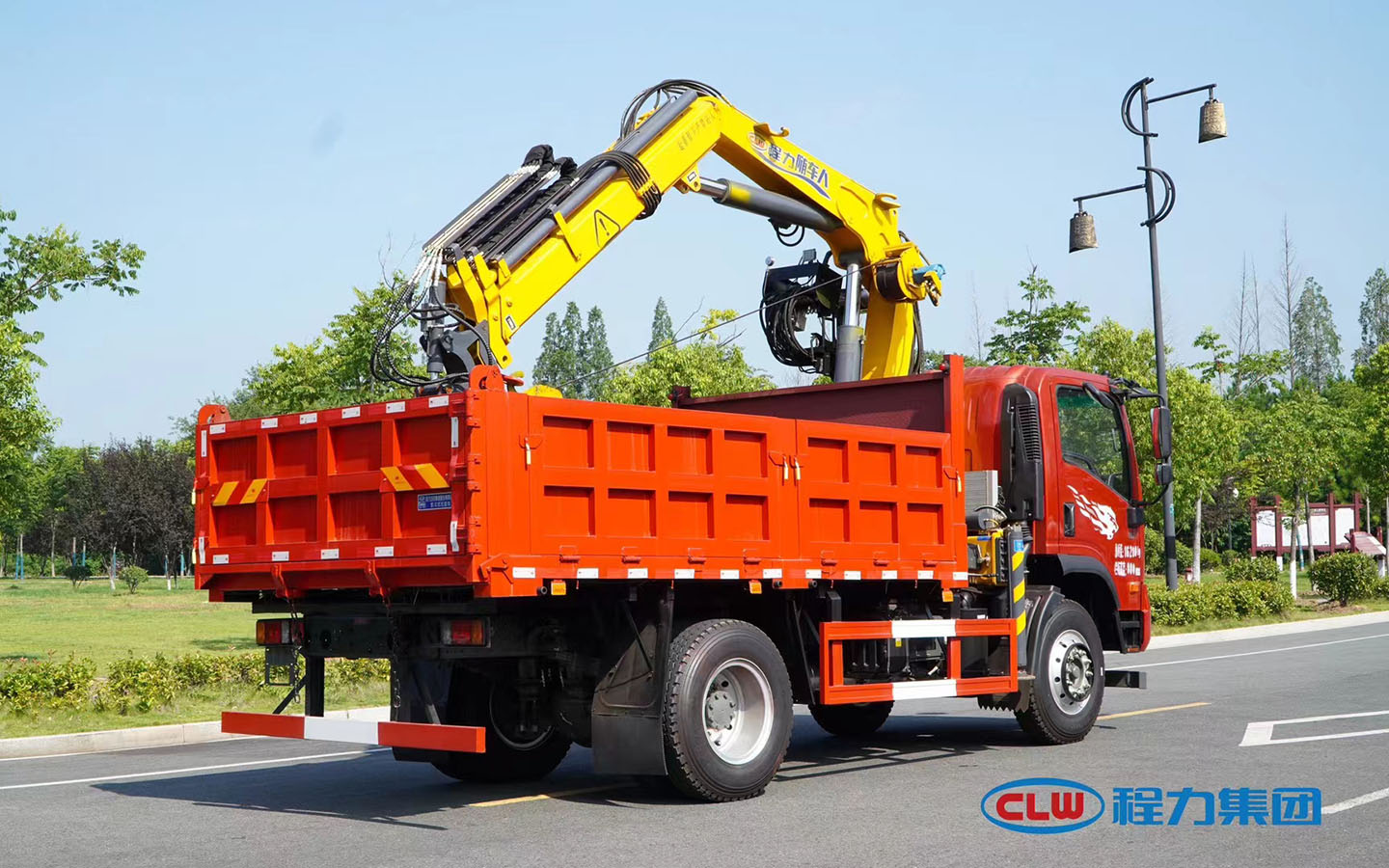 程力随车人5/6.3吨3节折臂随车抓,最大作业臂长8.2米,最大作业高度11.2米,搭载电控一控三操作阀,类挖机操作手柄,标配液压散热器,整个吊机及抓头均可360°无限旋转,抓头类型可以根据实际工况,选择3+2抓头或者4瓣抓头,抓举能力强,装车速度快。整机全部液压件采用纯进口或者国内一线品牌,故障率低售后服务好;可选装抓木机,反折随车抓(货厢尺寸增加300mm)