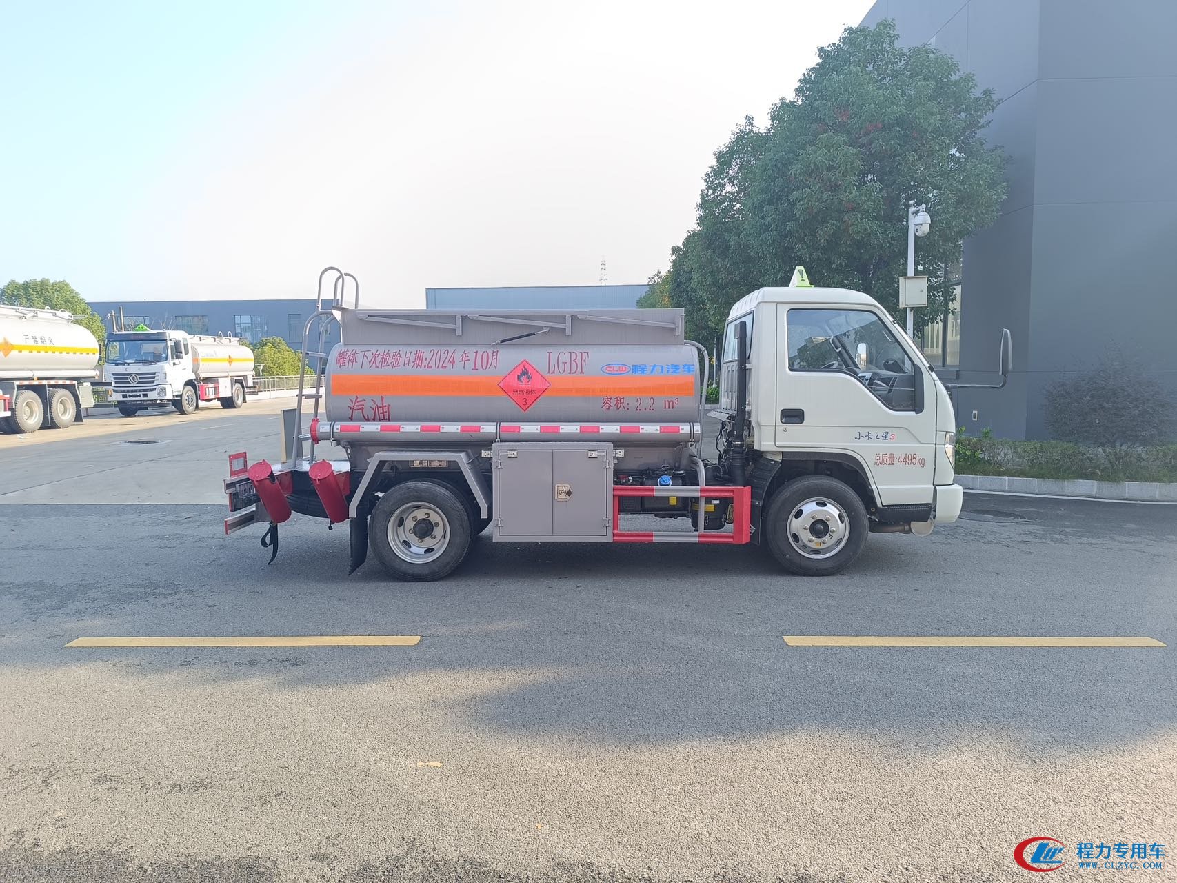 | 上装配置 | 公告容积:2.2方,实际有效容积:2.5方,可出汽柴油罐检报告,Q235B板材,筒体4.2mm厚,封头4.5mm厚,隔板4.2mm厚,单仓,罐顶壹个罐口,带全套欧标系统(下装油、油气回收、防溢流探杆、防静电线盘),1个海底阀带语音报警装置,带60/30专用油泵(可泵进泵出),(可选装大流量加油机和15米加粗卷盘及枪),后爬梯、手动护栏、工具箱、后保险杠、侧防护栏,按新标准制作,其他厂家标配,可出汽柴油介质的罐体检测报告,提供底盘证,整车证,上户发票。 | ||