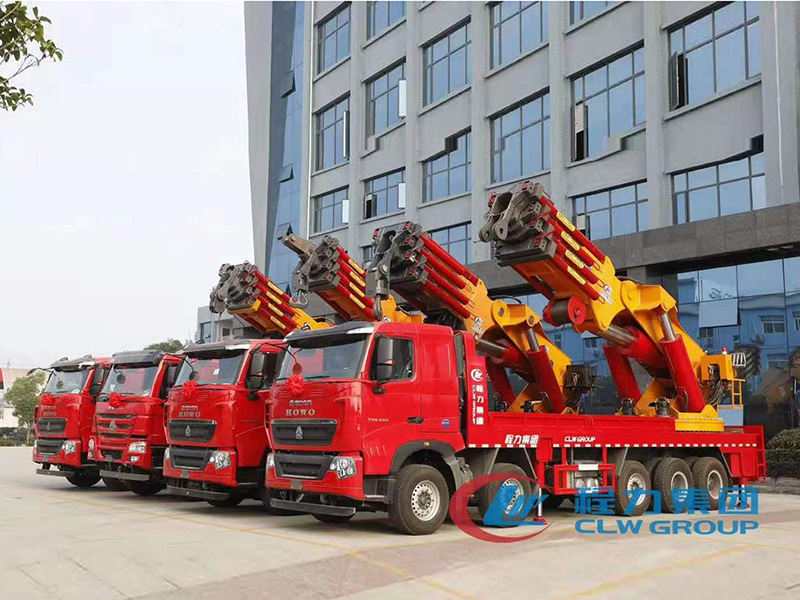程力威牌大型起重机,程力大型随车起重机批量订单展示 4辆100吨大型起重机,在德信办公大厅门前整装待发 100吨大型随车吊 程力威牌大型随车起重机...
