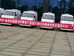 发往广州17台长安道路清洗车,市政环卫人行道清洗车,程力汽车集团扫路车专业厂生产的路面清洗车在程力办公大楼前整装待发。 程力 长安人行道养护车...